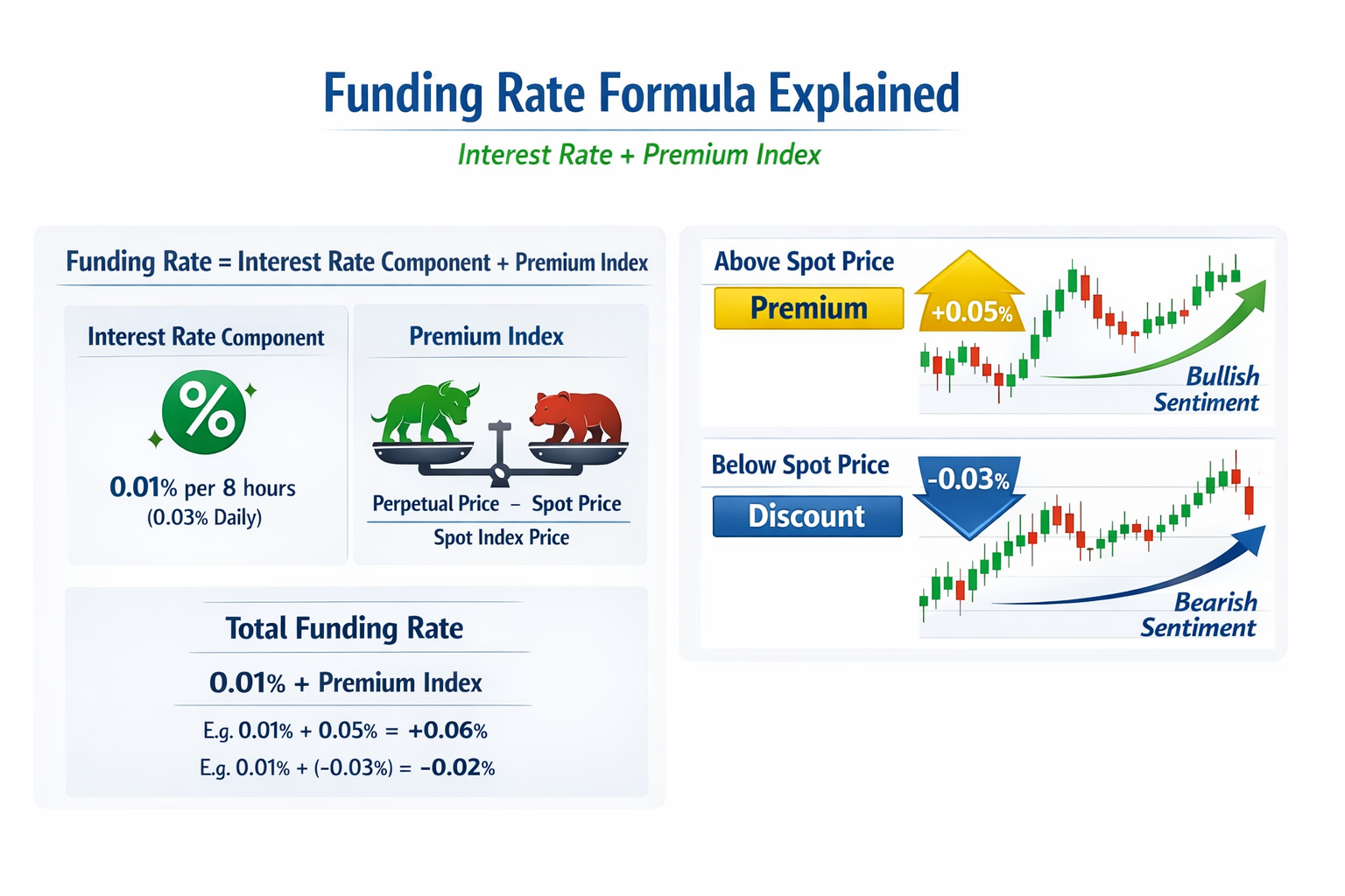 When the perpetual trades above spot (premium), the Premium Index is positive. When it trades below spot (discount), the Premium Index is negative. This premium or discount directly reflects market sentiment—bullish traders willing to pay a premium to be long, or bearish traders willing to accept a discount to be short.