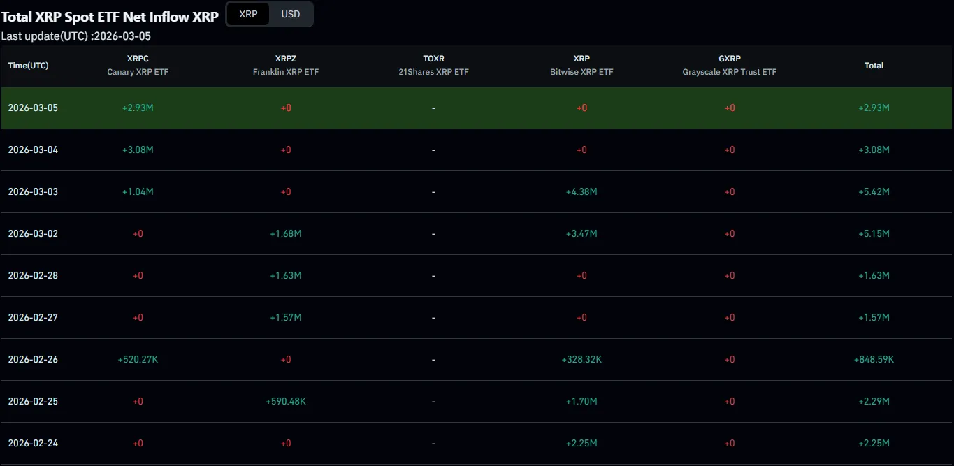Para mediados de noviembre de 2025, estos fondos ya habían experimentado una racha de 18 días de entradas que sumaban casi $1 mil millones. Para febrero de 2026, los ETF de XRP tenían $1.1 mil millones en activos netos. Durante el mismo período, los ETF de Bitcoin experimentaron salidas en lo que va del año, lo que sugiere que parte del capital institucional estaba rotando fuera de BTC hacia XRP.