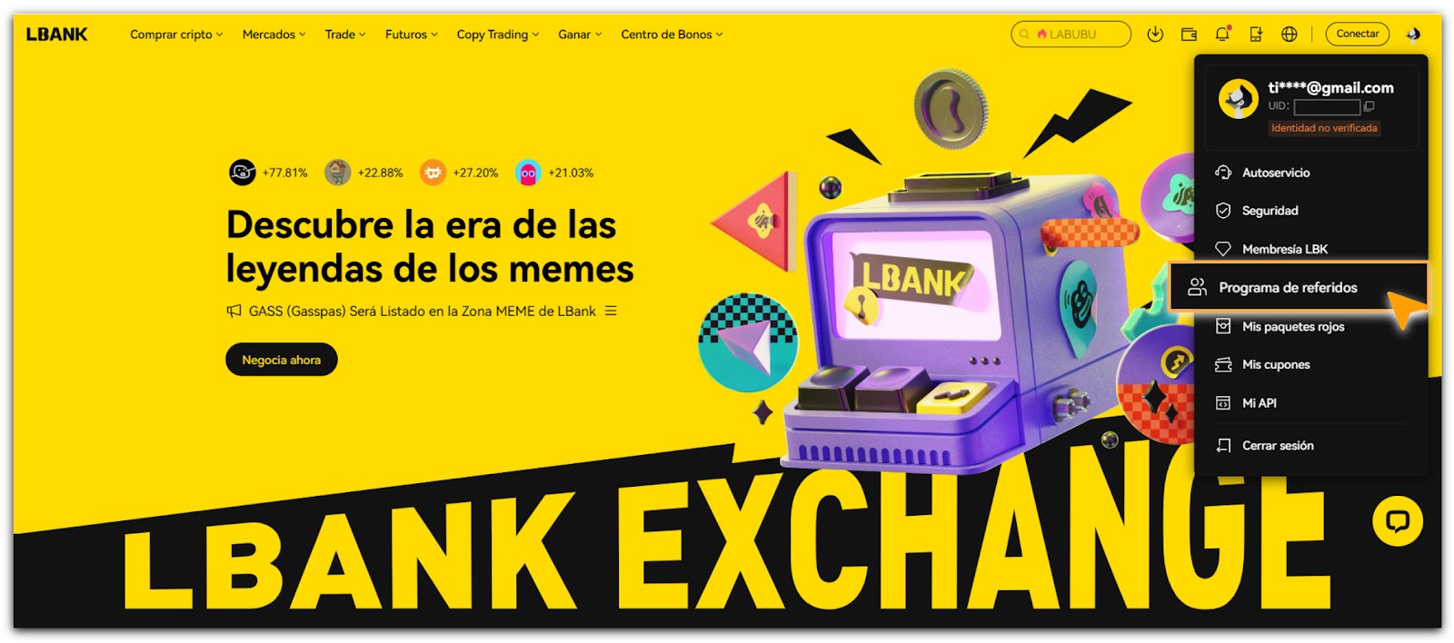 - 👉Ingresa a https://www.lbank.com/es