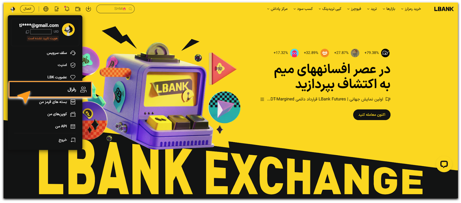 ۱.👈 به آدرس https://www.lbank.com/fa مراجعه کنید.
