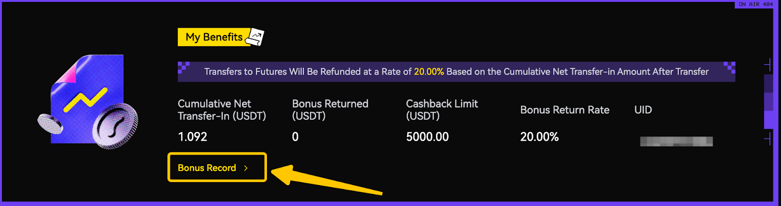 در طول دوره رویداد، هر انتقال وجه به حساب فیوچرز ممکن است بر اساس قوانین زیر مشمول بونوس شود: