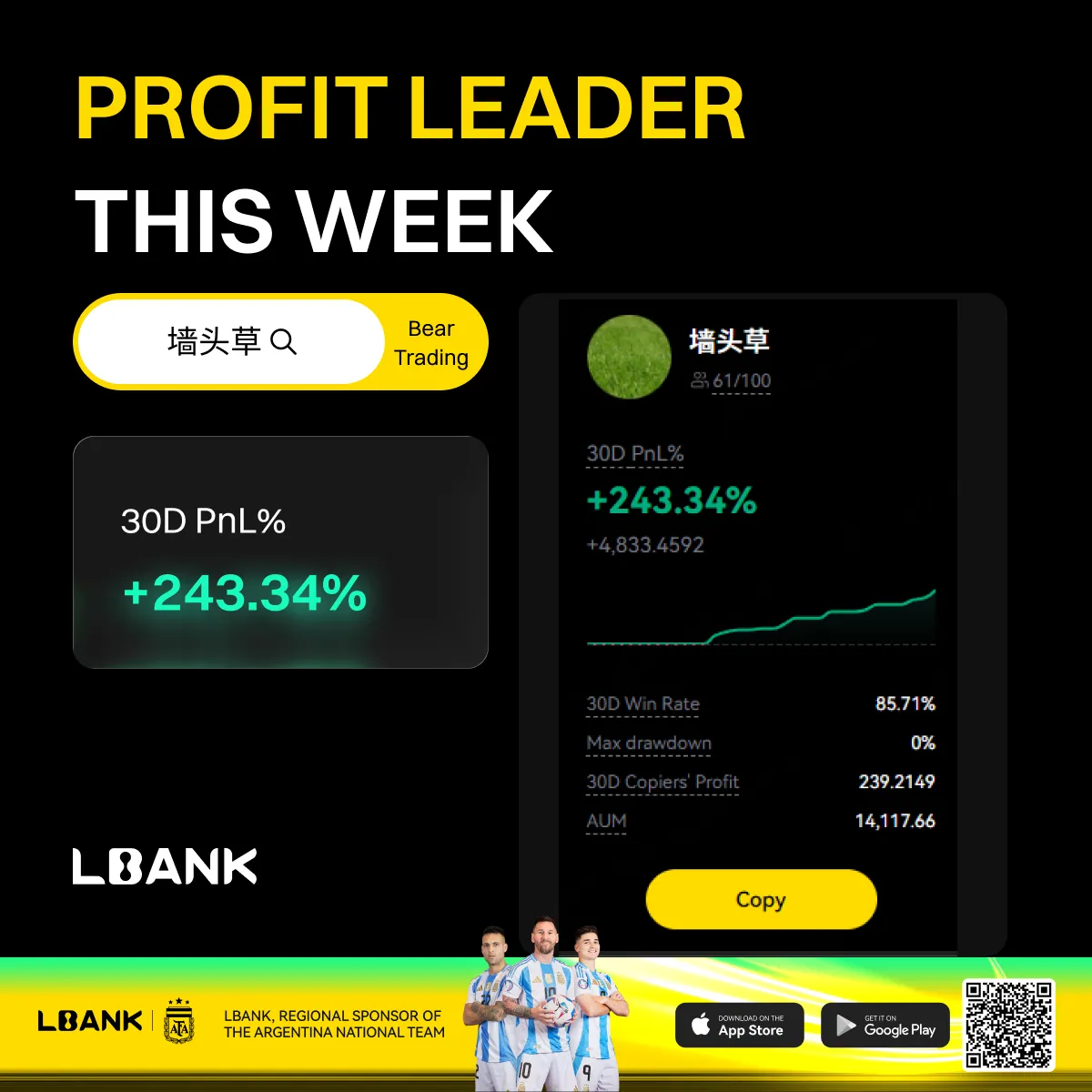 To keep all our users informed about the weekly happenings in LBank Copy Trading, we're introducing the Copy Trading Weekly Recap. Every Monday, we'll provide updates summarizing the previous week's enhancements, newly supported trading pairs, ongoing hot events, and more.