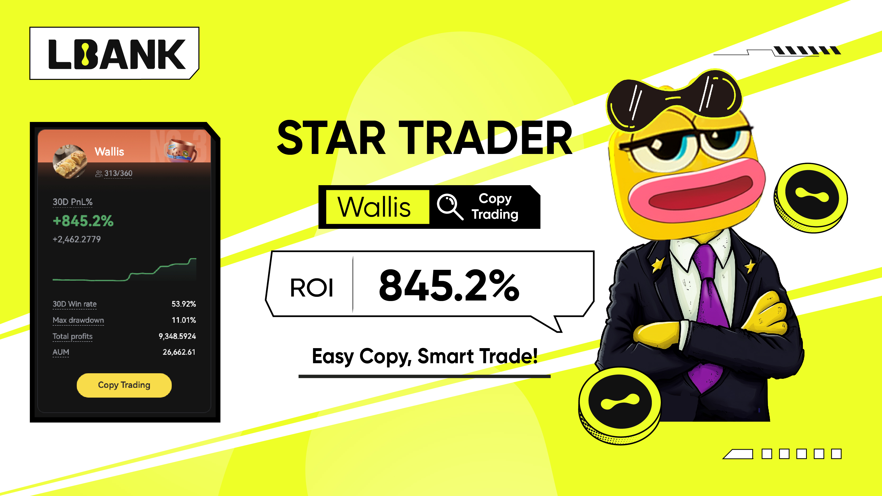 2.1 Meet our Star Traders of the week: "Wallis" has become the star trader of the week with 845.2% ROI! Easy Copy, Smart Trade! Start your copy trading journey now!