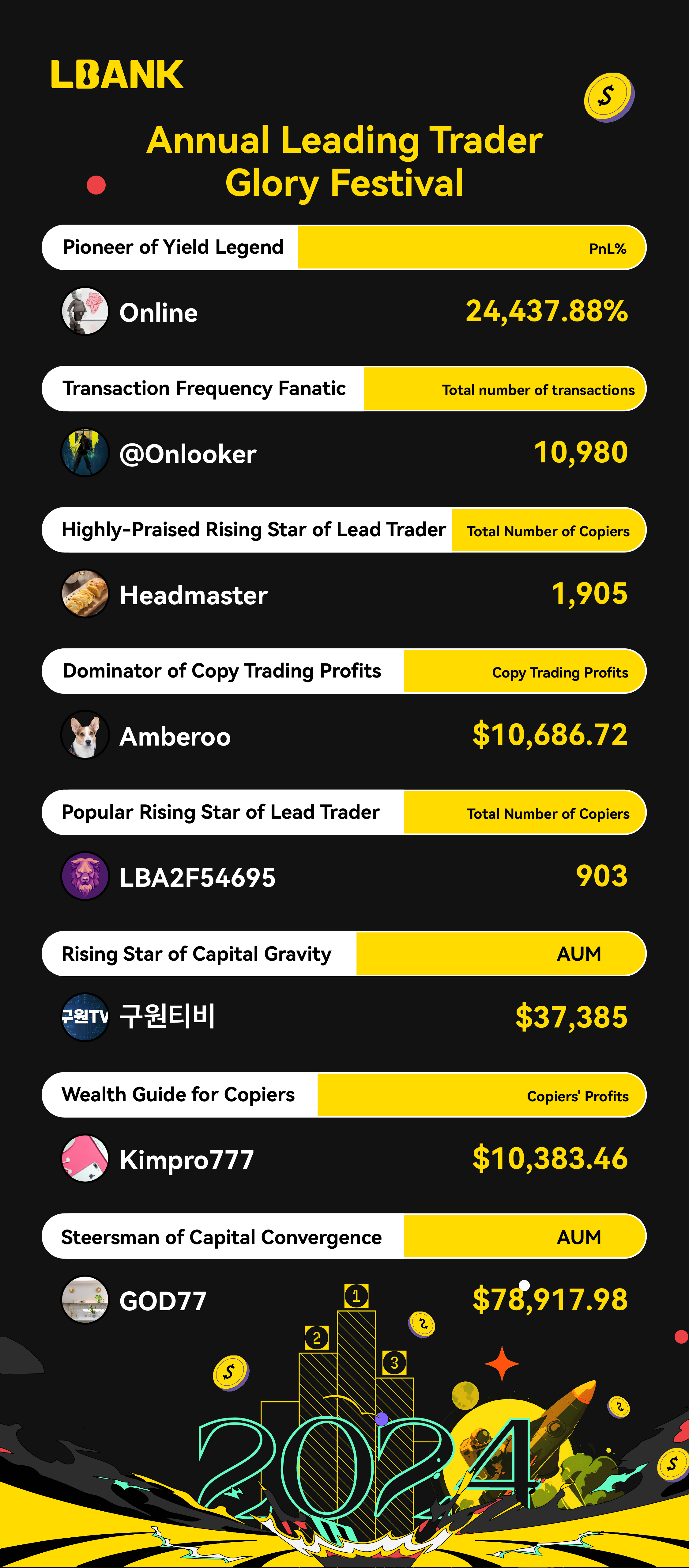 We particularly honor our Leading Traders, whose dedication and expertise have fueled the growth of our Copy Trading product. Their efforts have provided countless users with valuable trading insights and wealth-building opportunities.