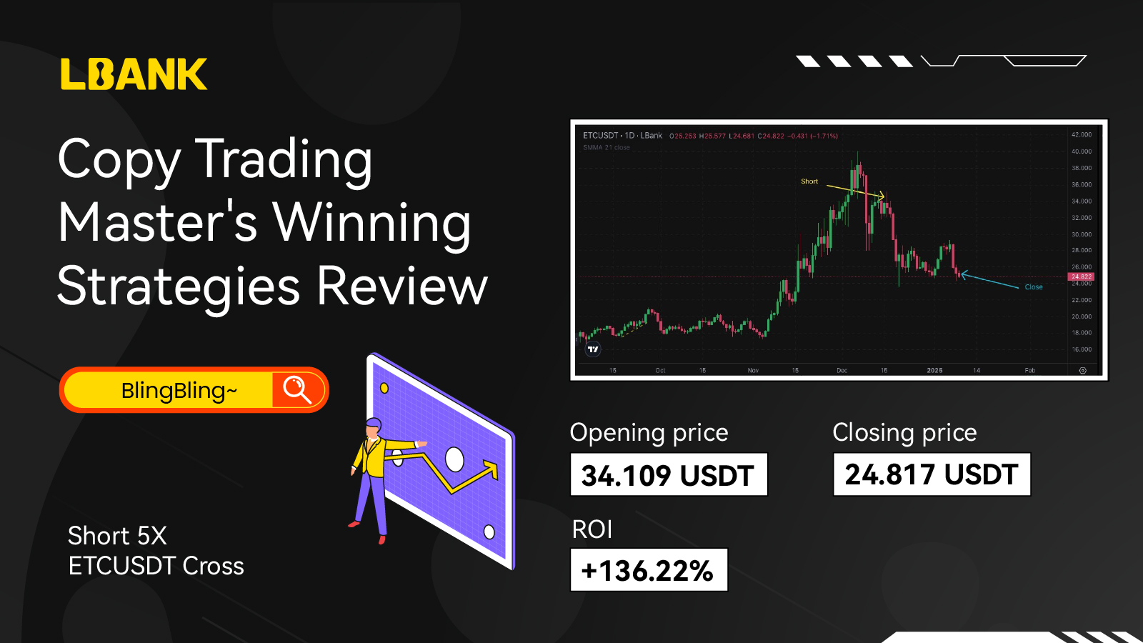 Upon completing a total of 9 trading goals, you will receive 5,000 USDT in trading capital and become a certified Wave Warrior on LBank. You may earn a monthly salary of up to 500 USDT, along with profit-sharing from copiers.
