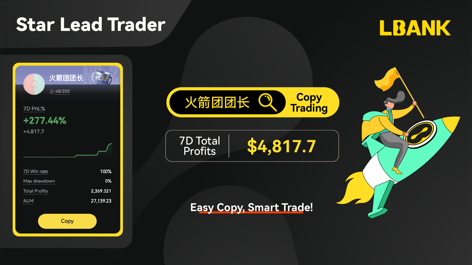1.1 Meet our Star Traders of the week: "火箭团团长" has become the star trader of the week with a 7D total profit of $4,817.7! Easy Copy, Smart Trade! Start your copy trading journey now!