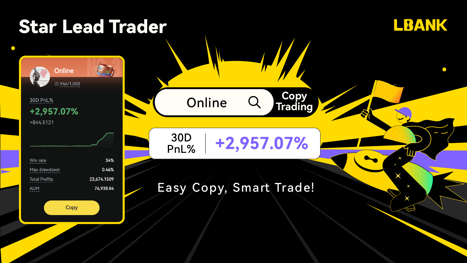 3.1 Meet our Star Traders of the week: "Online" has become the star trader of the week with 30D PnL% of +2,957.07%! Easy Copy, Smart Trade! Start your copy trading journey now!