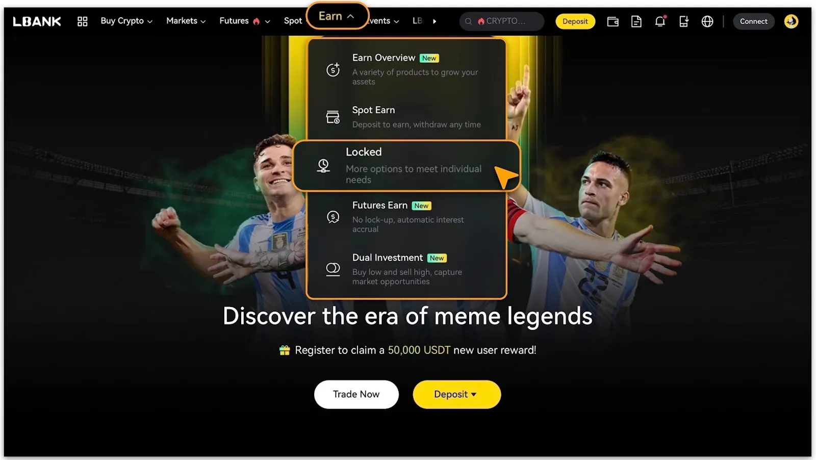 Đăng nhập vào trang web chính thức của LBank; vào mục 「Earn > Cố định」để xem các sản phẩm hiện có.