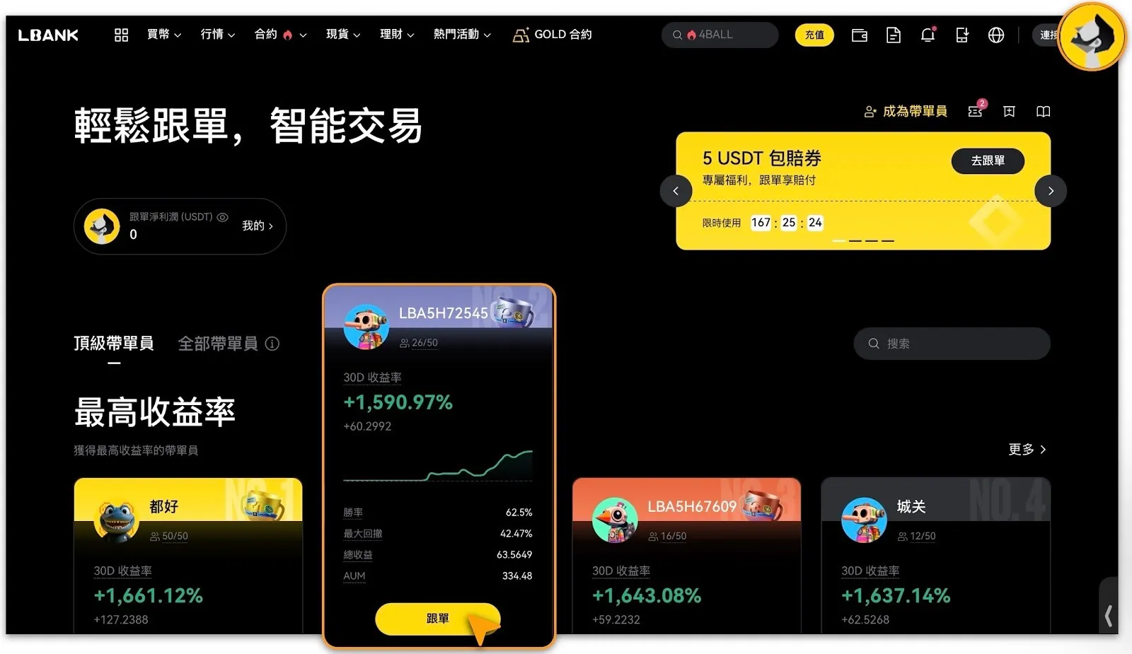 確認跟隨帶單員前,請務必完成「設置跟單參數」,與理解「LBank合約子帳戶的使用說明」;更多亦可參考「跟單優化設置與建議」。