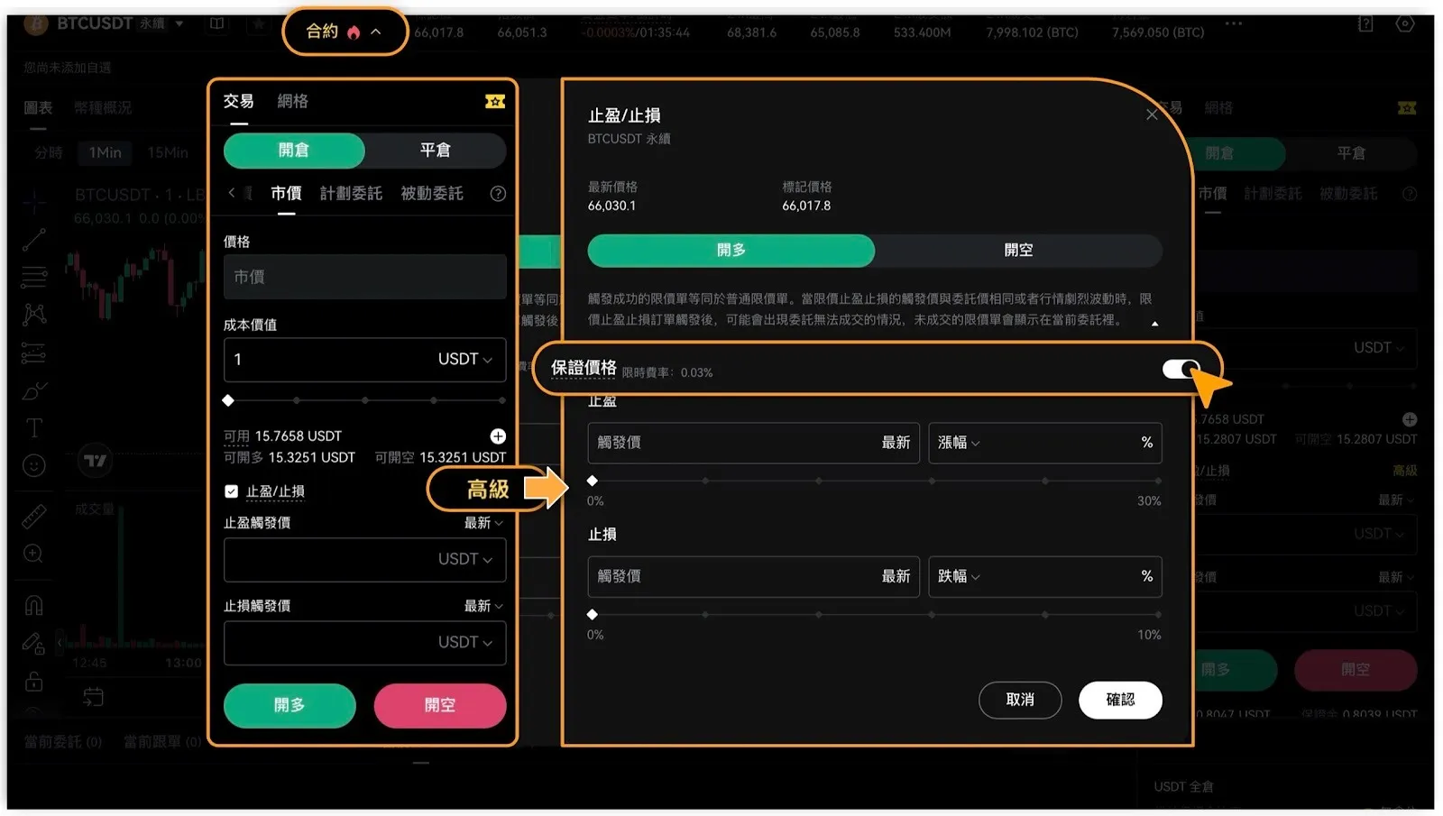 對於短線、高槓桿或對風險控制要求更嚴格的策略,用戶可優先考慮使用保證止盈止損搭配普通止盈止損進行分層管理。